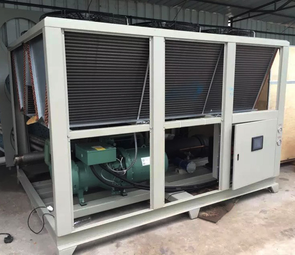 開放式結構,整機外型美觀,結構簡單,可隨時檢查機組運行情況,安裝及維護簡單方便。機組壓縮機選用名牌半封閉螺桿式壓縮機及電控元件,配備換熱高效優(yōu)質銅管制作的冷凝器及蒸發(fā)器。配備各類安全保護裝置,性能穩(wěn)定、噪音低、使用壽命長、操作簡單;采用液晶顯示人機界面,操作簡單便捷,運行狀況一目了然。
